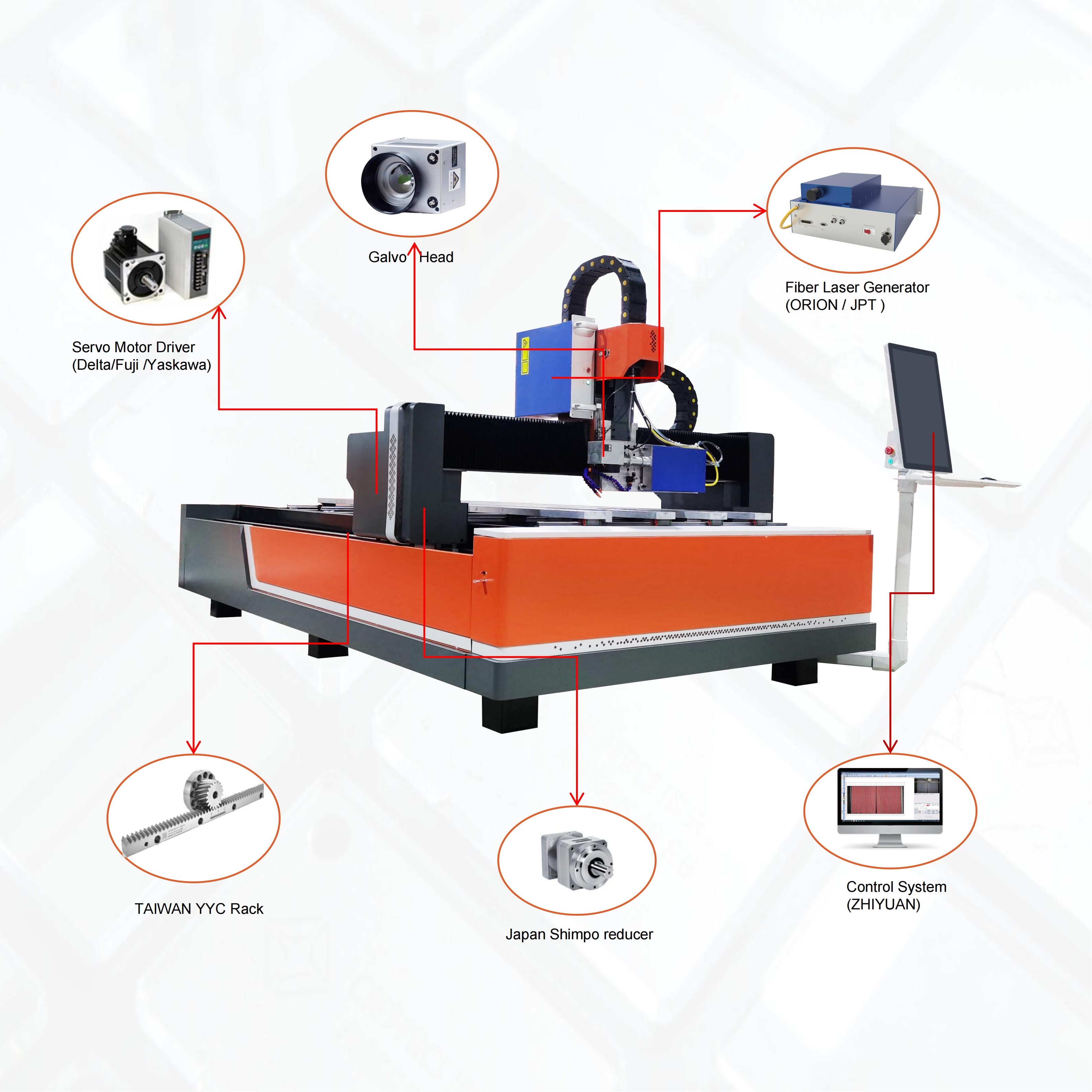Using well-known high-quality galvanometers, the marking speed is fast, the effect is fineand . The red light system is embedded in the vibrating lens, stable, and accurately positioned